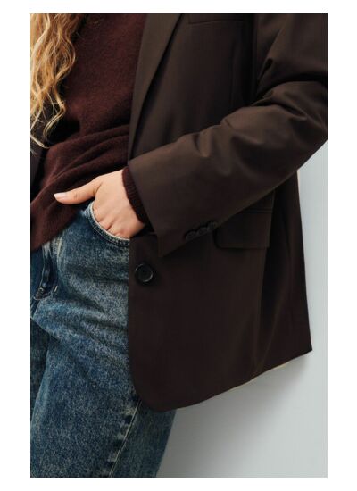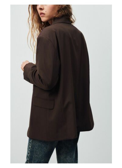 Le blazer est fabriqué dans une matière fluide et lisse, avec une doublure en acétate et viscose, garantissant confort et élégance.