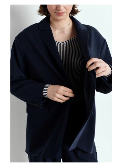 La veste est conçue dans une matière fluide et lisse qui offre souplesse et légèreté, assurant un confort optimal tout au long de la journée.