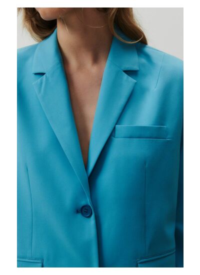 Quelles sont les caractéristiques pratiques du blazer Kabird ? Il dispose d’une fermeture par boutonnière, d’une poche passepoilée sur la poitrine, de deux poches à rabat et d’une poche intérieure, offrant à la fois style et fonctionnalité pour vos essentiels.
