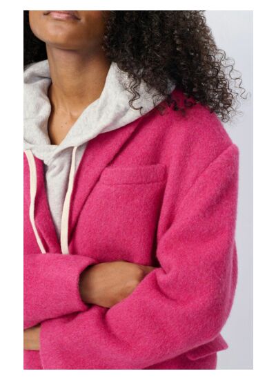 Le blazer Roly, confectionné en laine vierge italienne, rend la silhouette élégante grâce à son allure de petit manteau. Parfaite pour la vie quotidienne, sa matière chaude et légère offre un confort optimal apprécié dès la mi-saison.