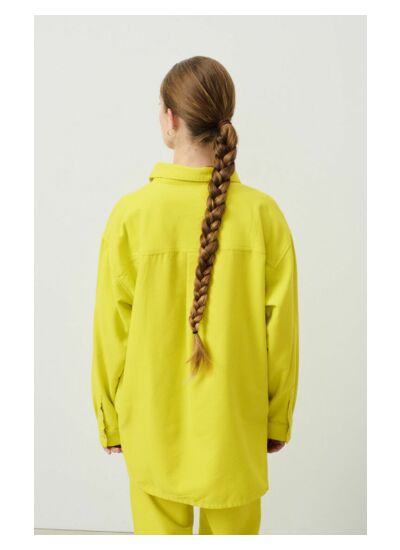 Elle possède un col classique, une fermeture par boutonnière, des manches longues avec poignets boutonnés, et une coupe ample pour un style moderne et confortable.