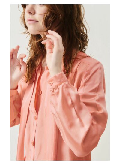 La chemise est réalisée dans une matière fluide et brillante qui apporte une touche sophistiquée tout en assurant un confort optimal tout au long de la journée.