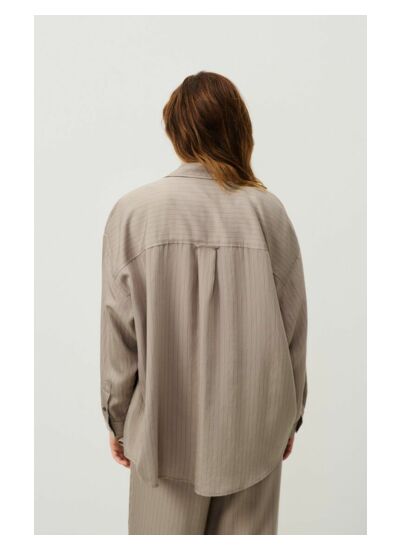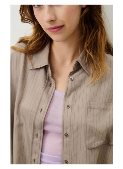 La chemise pour femme Okyrow est conçue dans une matière lumineuse, très fluide et légère. Elle se distingue par ses fines rayures style tennis, qui lui apportent une touche subtile et élégante. Avec sa coupe oversize, elle se porte parfaitement ouverte sur un débardeur et accompagnée d'un jean.