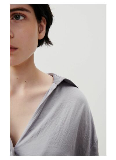 Quel type de tissu est utilisé ? La chemise est réalisée dans un tissu fluide et satiné, offrant une sensation douce et un tombé léger qui s’adapte à toutes les saisons.