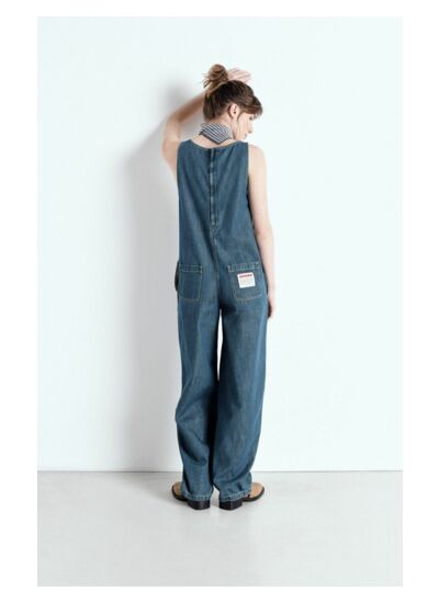 Pour conserver la texture et les nuances du denim vert, il est recommandé de laver la combinaison à l’envers à basse température, éviter le sèche-linge et privilégier un séchage à l’air libre.