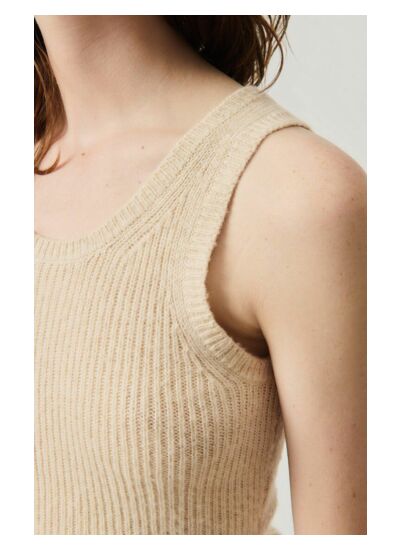 De quel matériau est composé ce débardeur ? Ce modèle est réalisé en maille douce travaillée en point fantaisie, offrant une texture légère et agréable au toucher, idéale pour un confort durable au quotidien.