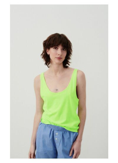 De quel matériau est composé le débardeur ? Il est fabriqué dans un mélange de coton et de lin, offrant à la fois légèreté, respirabilité et un toucher naturel.