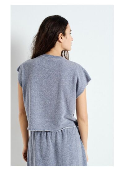Pour conserver la souplesse et l’aspect chiné, il est recommandé de laver le débardeur à basse température, de préférence à la main ou en cycle délicat, et de le sécher à plat.