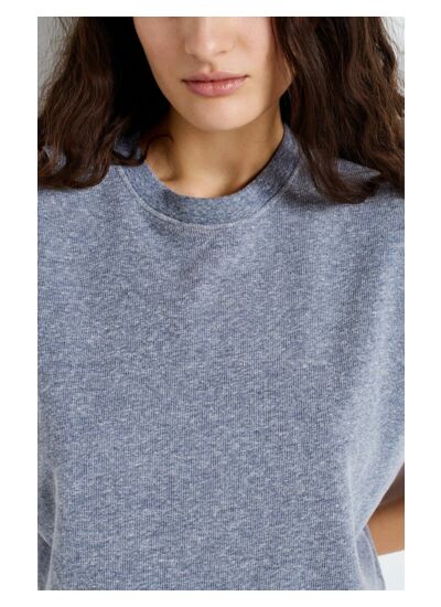 Il est confectionné dans un fil chiné fin, offrant une matière souple, légère et presque fluide, parfaite pour les journées chaudes.