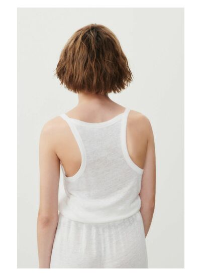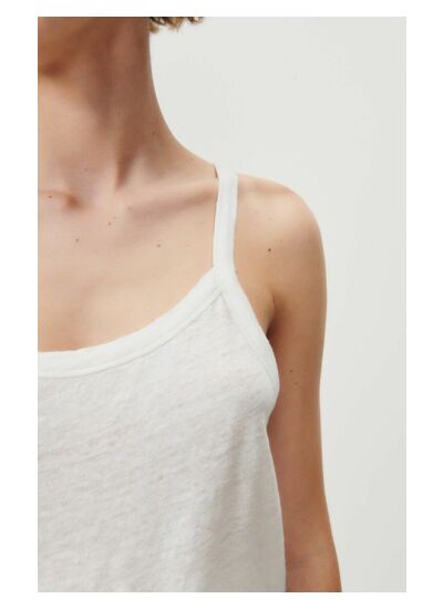 Le débardeur présente un tissu légèrement transparent, apportant une touche de légèreté tout en restant discret et raffiné.