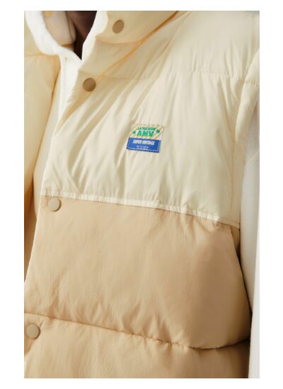 Comment entretenir cette doudoune sans manches ? Pour préserver la qualité du tissu et du rembourrage en polyester, il est recommandé de suivre les instructions de lavage indiquées sur l’étiquette, généralement un lavage en machine à basse température avec un programme délicat.
