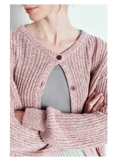 Le gilet Tobay adopte une coupe boule et un col rond, pour une silhouette douce et féminine. Confectionné dans une maille moulinée à côtes larges, il séduit par son volume généreux, son look rétro et son aspect texturé. Boutonné et légèrement raccourci, il se porte aussi bien fermé qu'ouvert sur une robe ou un t-shirt, pour un style estival facile à superposer.