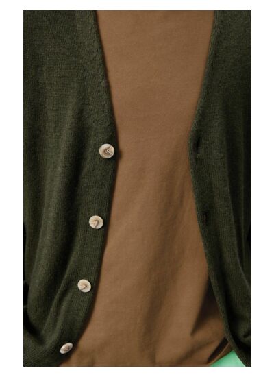Il se porte idéalement sur un t-shirt pour une tenue décontractée et stylée, parfaite pour les journées fraîches grâce à sa coupe ample et son col V.
