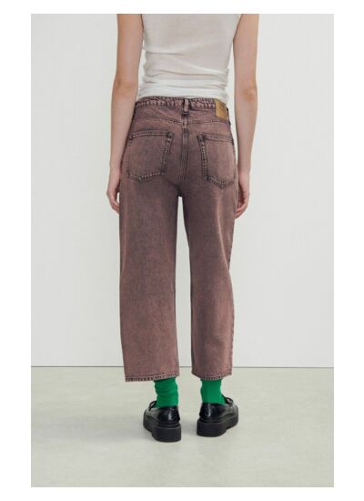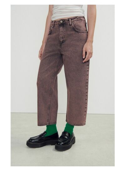 Il présente une coupe boyfriend avec taille basse, fourche basse et jambe resserrée, offrant un équilibre parfait entre décontraction et féminité.