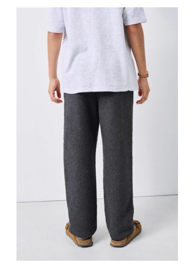 De quelle matière est fabriqué ce pantalon ? Le jogging est confectionné en fibres issues de l’agriculture biologique, principalement originaires d’Inde, sauf pour la version chiné provenant du Tadjikistan. La texture effet bouclette assure un toucher doux et une excellente qualité.