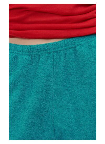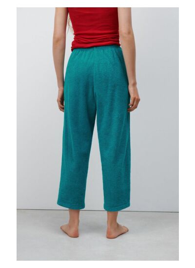 De quelle matière est composé ce pantalon de jogging ? Ce pantalon est fabriqué en matière effet bouclette, texturée, avec des fibres issues de l'agriculture biologique. Les fibres proviennent principalement d'Inde, sauf pour la version chinée qui utilise des fibres de Tanzanie.