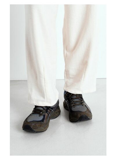 Le jogging présente une coupe ample avec des jambes légèrement arrondies, offrant une liberté de mouvement tout en conservant une allure féminine et tendance.