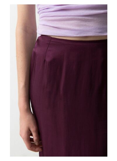 La jupe est confectionnée dans une matière soyeuse, brillante et fluide, qui assure confort et élégance tout au long de la journée.