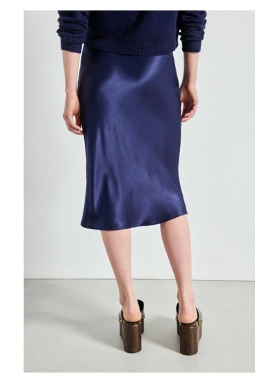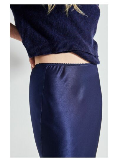 La jupe midi Voogy pour femme est conçue dans une matière fluide et lumineuse, qui apporte délicatesse et féminité à la silhouette. Inspirée de l'univers de la lingerie, elle se porte très bien avec une grosse maille pour jouer sur les contrastes de matières.