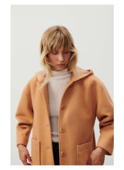 Quelles sont les caractéristiques pratiques du manteau Bazybay ? Il dispose d’une fermeture par boutonnière, deux poches plaquées extérieures et une poche passepoilée intérieure pour un rangement sécurisé.