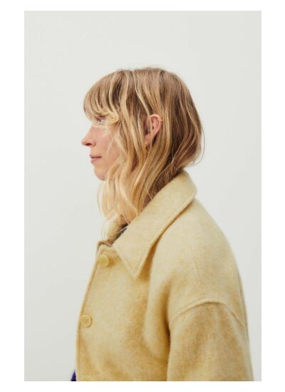 Comment se ferme le manteau Roly ? Le manteau se ferme par une boutonnière classique, garantissant une tenue élégante et facile à ajuster.