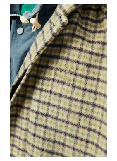Pour préserver la qualité du lainage et la forme du manteau, un nettoyage à sec est recommandé. Évitez le lavage en machine pour ne pas abîmer la matière.