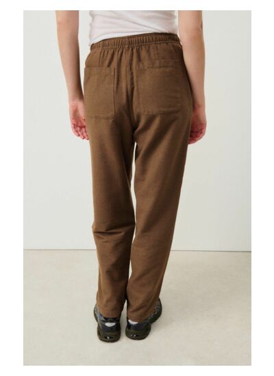 Quelle est la matière du pantalon Dakota ? Le pantalon est confectionné dans une matière grattée avec un effet flanelle, offrant douceur et confort tout au long de la journée.