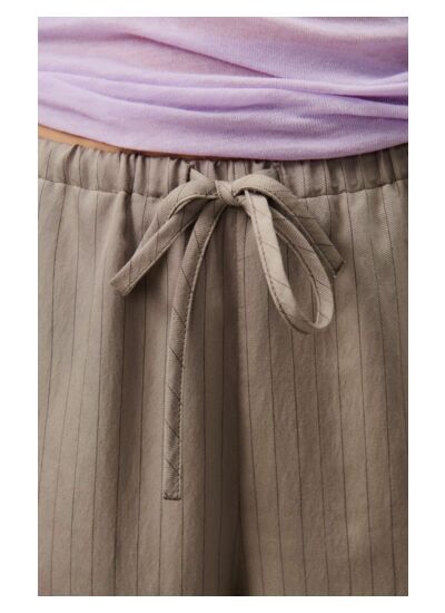 Comment porter le pantalon Okyrow pour un look élégant ? Sa coupe ample et ses fines rayures brodées apportent une touche sophistiquée. Il s’associe idéalement avec la chemise de la même collection pour un total look élégant et confortable, parfait pour le bureau ou les sorties.