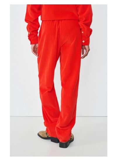 Le pantalon est conçu en velours côtelé, un tissu iconique d’American Vintage, qui offre à la fois douceur, résistance et un aspect rétro élégant.