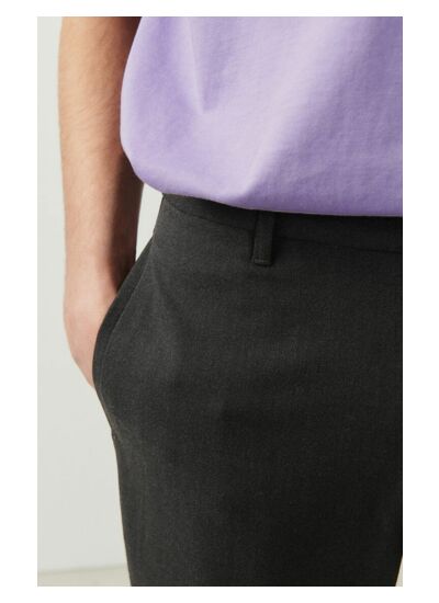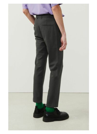 Quelles sont les caractéristiques pratiques du pantalon ? Il dispose de passants de ceinture, d’une braguette à zip et bouton, ainsi que de deux poches passepoilées à l’avant et à l’arrière pour un usage fonctionnel au quotidien.