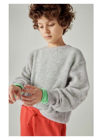 Quelle est la coupe du pull Razpark enfant ? Il présente une coupe boule avec des épaules tombantes, offrant une silhouette moderne et un confort optimal pour les enfants en mouvement.