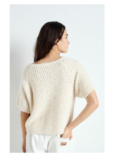 Sa matière ajourée et sa coupe légère en font un vêtement idéal pour les saisons intermédiaires, à porter seul ou superposé selon la température.