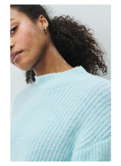 Avec quoi associer le pull East pour un look réussi ? Portez-le avec un jean pour un style casual ou sur une robe pour une allure plus sophistiquée, grâce à sa coupe courte et son col montant.
