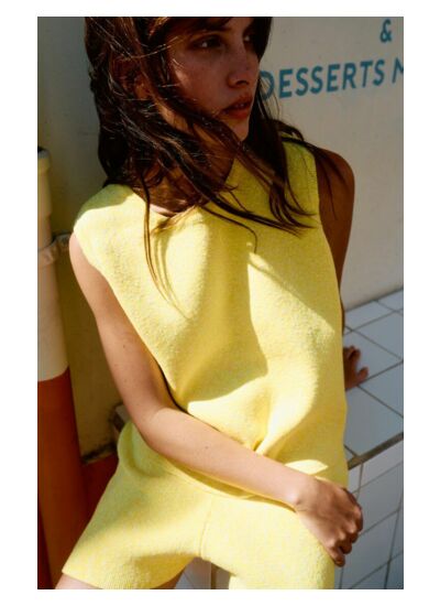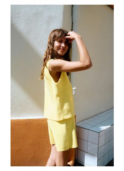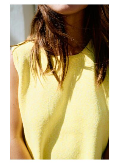 Oui, sa coupe courte sans manches et sa maille légère en font une pièce estivale facile à porter, parfaite pour les journées chaudes tout en conservant une touche élégante.