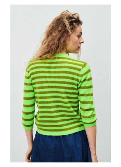 Comment est la coupe et le style du pull Raxow ? Il présente une coupe droite avec un petit volume qui sublime la silhouette. Ses manches 7/8 apportent une touche moderne et élégante, tandis que le col rond et les bords côtelés renforcent son allure raffinée.