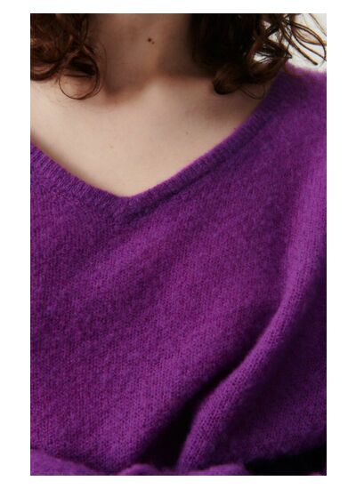 Quelle coupe et quel style propose ce pull ? Le Zakday présente une coupe boule courte avec des épaules tombantes, un col en V et des manches longues, pour une silhouette moderne et féminine.