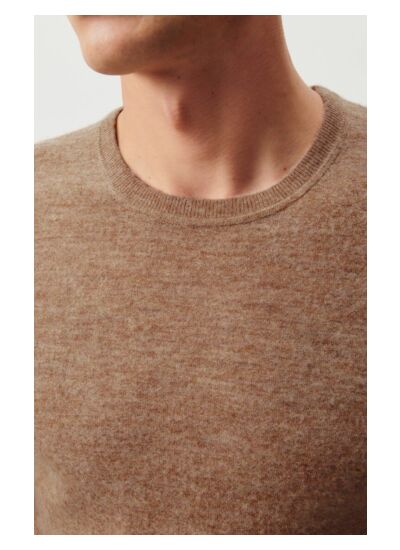 Le pull est confectionné en pure laine, avec une maille grattée fine et chaude qui assure confort et douceur au porter.