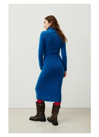 Comment porter la robe Falyday pour un look réussi ? Sa coupe longue et près du corps associée au col roulé en fait une pièce polyvalente. Portez-la avec des bottines pour un style urbain ou avec des escarpins pour une allure élégante et féminine.
