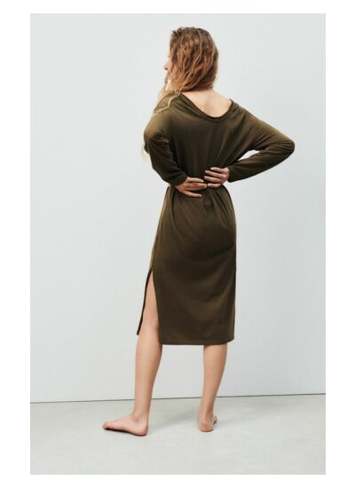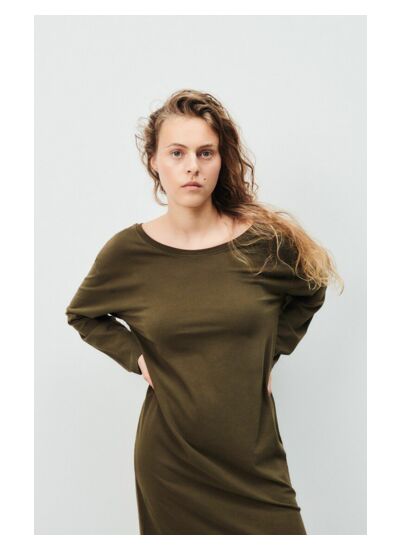 Grâce à sa coupe fluide, son encolure bateau et sa fente latérale, cette robe s’adapte facilement à un style casual ou plus habillé. Associez-la à des baskets pour un look décontracté ou à des escarpins pour une tenue plus élégante.