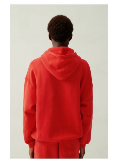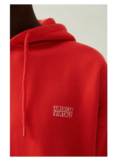 Il présente une coupe ample avec épaules tombantes, une capuche classique avec lien de resserrage et le logo American Vintage imprimé discrètement sur la poitrine pour un style moderne et intemporel.