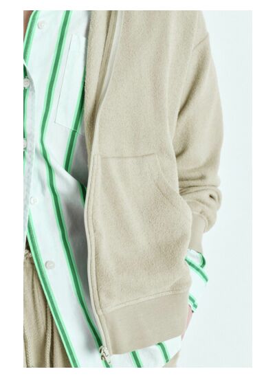 Le sweat zippé à manches longues Ytibay pour femme allie douceur et confort. Sa coupe ample et sa texture en bourette, un coton à l’aspect légèrement irrégulier au toucher sec et naturel, lui donnent un style authentique, façon seconde main. Son intérieur gratté offre une sensation moelleuse et agréable à porter, idéale pour la mi-saison. Confectionné dans une matière souple et légère, il se glisse facilement par-dessus un top pour un look décontracté.