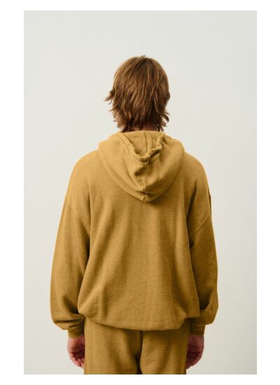 Pour préserver la qualité du molleton et les couleurs, il est recommandé de laver le sweat à l’envers à basse température et d’éviter le sèche-linge. Un séchage à l’air libre est préférable.