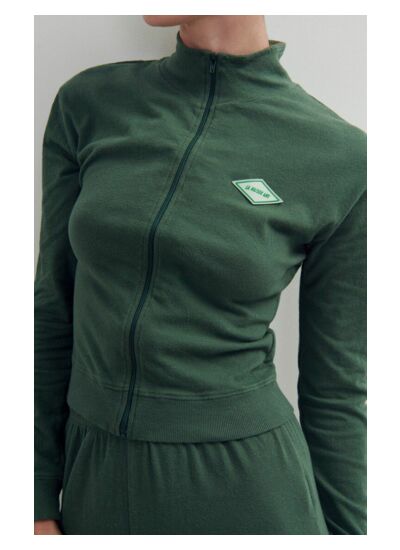 Oui, il dispose d’un col montant zippé, de bords côtelés et d’un patch logo "La Maison AMV" cousu sur la poitrine pour une touche distinctive et élégante.