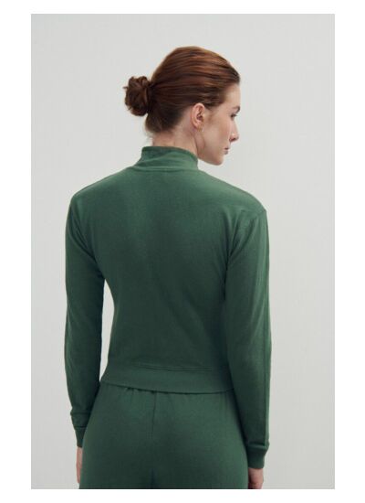 Il se porte aussi bien en tenue décontractée qu’en superposition sous une veste ou un manteau, grâce à sa coupe courte et près du corps qui valorise la silhouette.