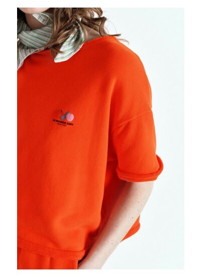 Le t-shirt Atubay, en molleton molleux offre confort et fluidité. Son logo "La maison AMV" ajoute une touche sportive à votre look. Il s'associe parfaitement avec le short ou le jogging de la même famille.