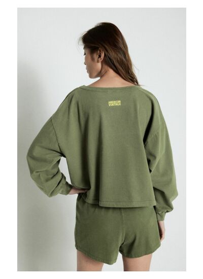 Il est recommandé de laver ce t-shirt à l’envers à basse température et d’éviter le sèche-linge pour conserver la douceur du coton gratté et la tenue de la coupe dans le temps.