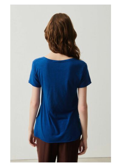 Comment porter ce t-shirt ? Sa coupe trapèze et son col en V apportent une touche féminine et élégante, idéale à porter seule en saison chaude ou sous une maille pour plus de chaleur.