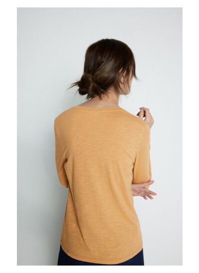 Comment porter ce t-shirt pour un style réussi ? Ce t-shirt manches longues et col U se porte aussi bien seul qu’en superposition sous une maille ou une veste. Ses coloris vintage apportent une touche d’authenticité à toutes vos tenues.