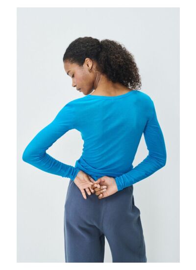 Le t-shirt est-il adapté aux saisons plus fraîches ? Oui, ses manches longues et sa matière fine en font une pièce idéale pour être portée sous une veste ou un pull, apportant confort et style sans volume excessif.