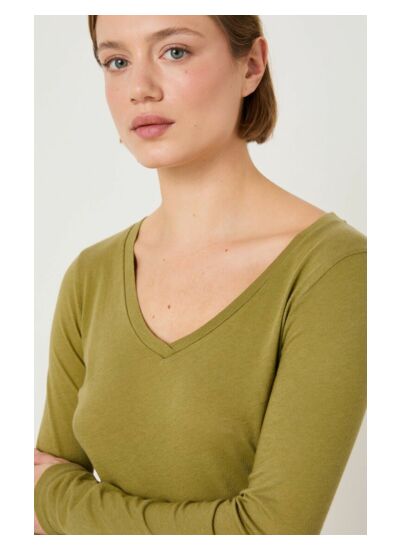 T-shirt ajusté manches longues col V